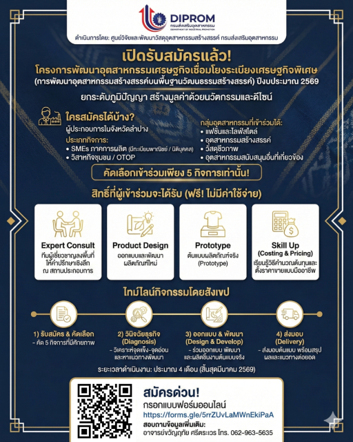 เปิดรับสมัครเข้าร่วมโครงการ ประจำปีงบประมาณ 2569 โดย กลุ่มพัฒนาเทคโนโลยีการผลิต (กพ.ศว.กสอ.)