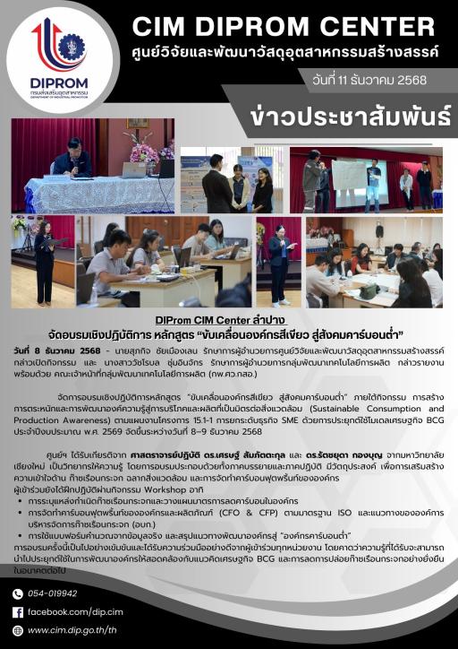DIProm CIM Center จัดการอบรมเชิงปฏิบัติการหลักสูตร "ขับเคลื่อนองค์กรสีเขียว สู่สังคมคาร์บอนต่ำ"
