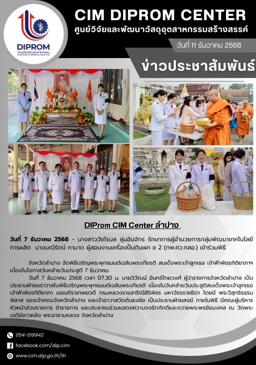 DIProm CIM Center เข้าร่วมพิธีเจริญพระพุทธมนต์เฉลิมพระเกียรติ สมเด็จพระเจ้าลูกยาเธอ เจ้าฟ้าพัชรกิติยาภาฯ เนื่องในโอกาสวันคล้ายวันประสูติ 7 ธันวาคม